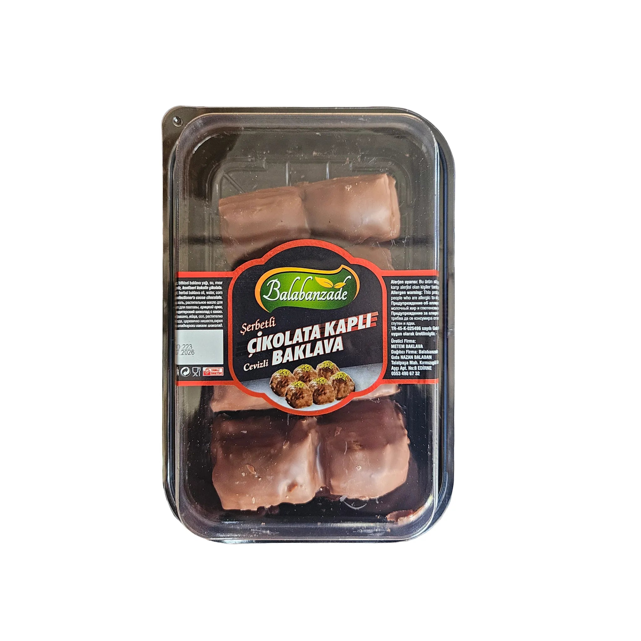 Вкусна турска баклава, покрита с шоколадова глазура и пълнеж от ароматни орехи.
